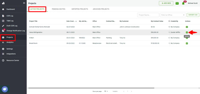 - Here you will see a list of all of your Active projects.