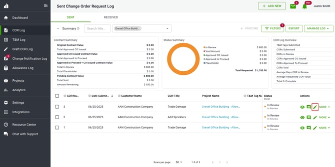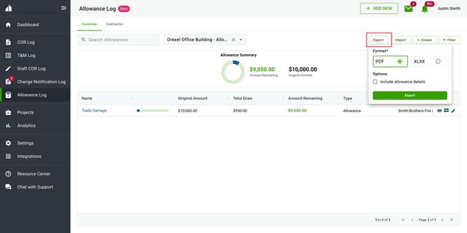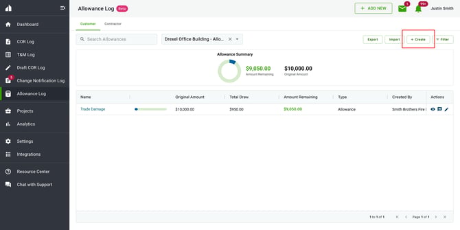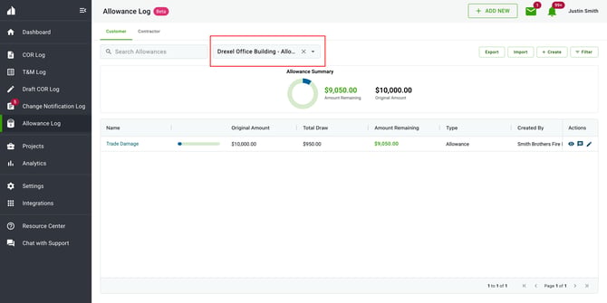 If you already have multiple CORs created on a project, you can quickly apply them to an existing allowance in bulk instead of adding them one at a time. This is especially helpful when onboarding a project mid-stream or reconciling several CORs against the same allowance.