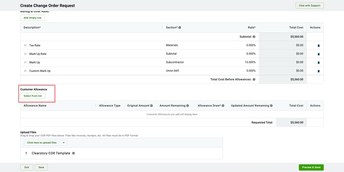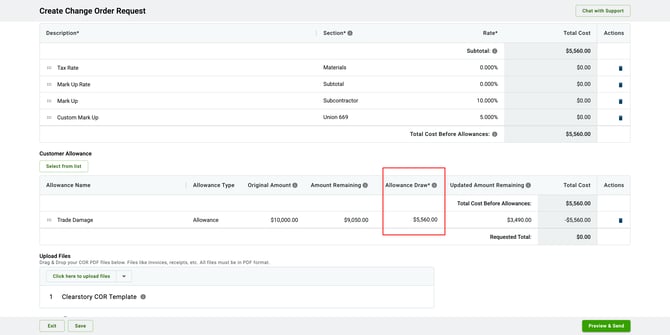 💡 Tip: If a selected COR would cause the allowance to go negative, Clearstory will warn you before you can proceed.
