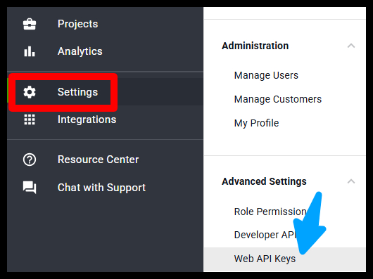 Under Advanced Settings, select Web API Keys.