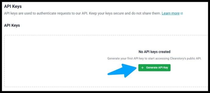 API keys allow you to authenticate and access Clearstory’s API programmatically. This enables integrations with your applications, automation workflows, and third-party tools.