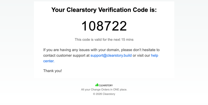 Clearstory sends a verification email to confirm domain ownership.