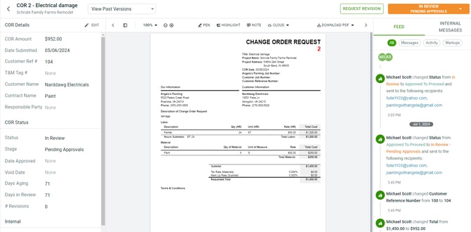 Revise and Resubmit: If something needs to be changed on the T&M Tag you can send a note back to the contractor telling them what needs to be changed. They can quickly make the edits on their end and resend the T&M Tag to you via email.