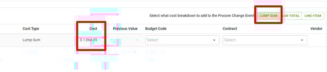 3. Chose if you'd like the line items broken down or a lump sum. Select your Budget Codes and Contract