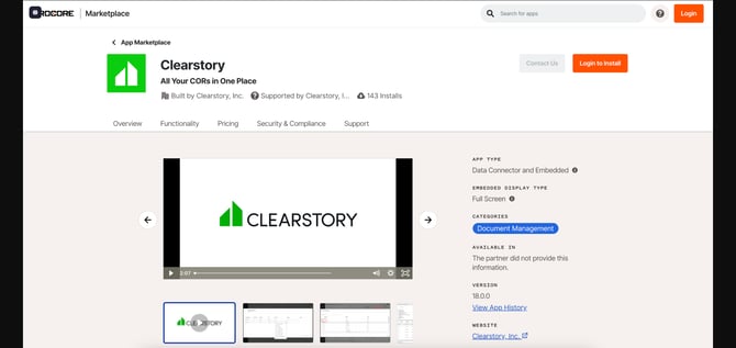 - Log in to your Procore account, navigate to the Procore Marketplace, and install the Clearstory app