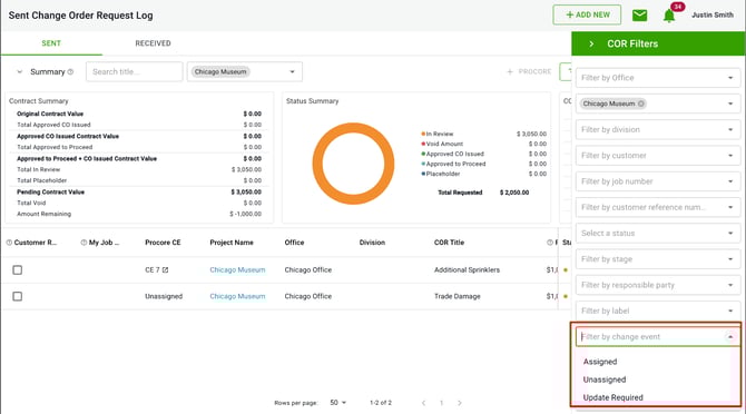 - Filtering COR Log by Procore Change Events