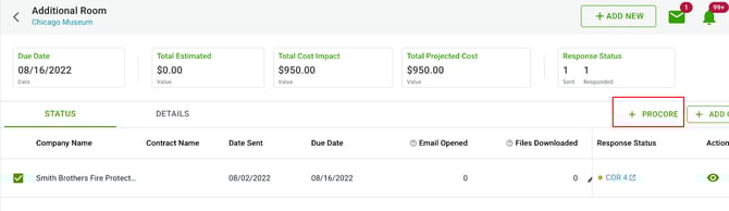2. Select the COR then +PROCORE