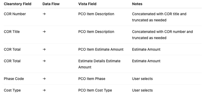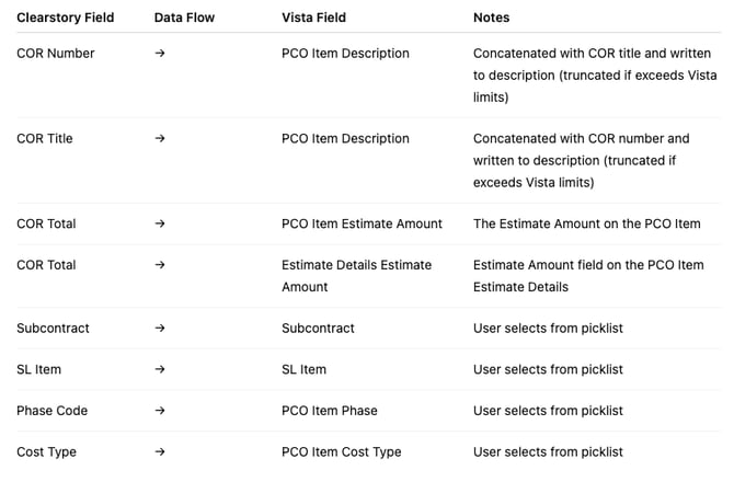 GCs typically receive CORs from subcontractors. These are pushed into Vista as lump-sum PCO Items.